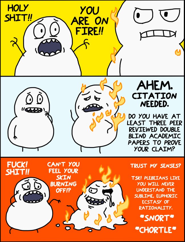 It's kind of funny, as these clowns do exist, but I think we're a very long way from even a noticeable percentage of people being too rational & evidence based.