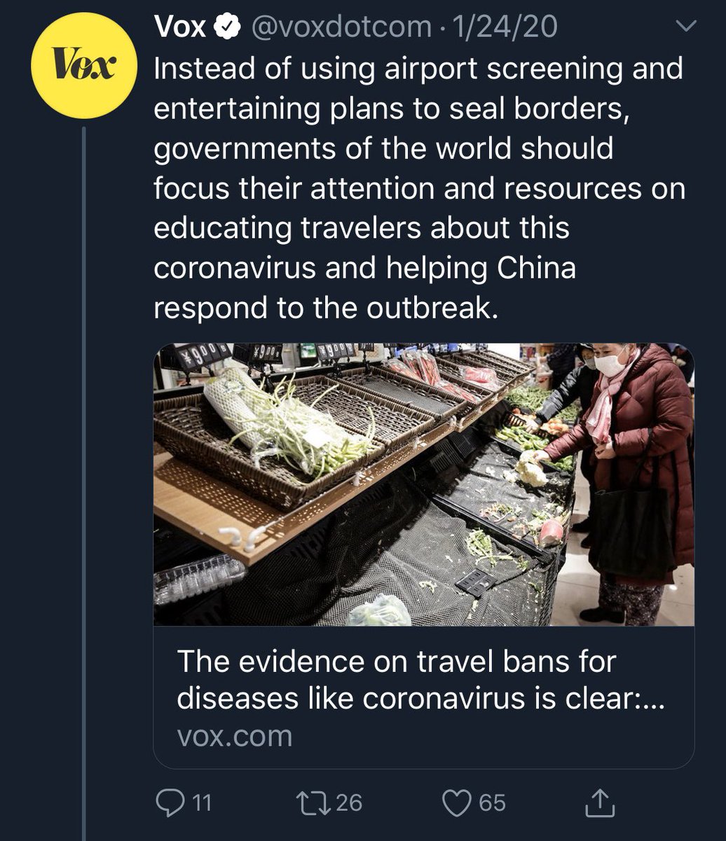 idk if it's just fun to dunk on any kind of news sources but all these tweets are from early february and earlier. covid-19 was only declared a pandemic in march y'all ever heard of change orhttps://twitter.com/CovfefeAnon/status/1248332697883287552 …
