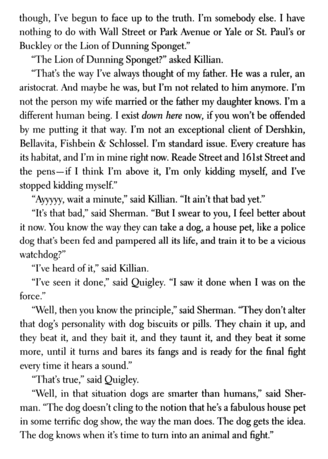 Bonfire of the Vanities was a great title because it described how far McCoy had to fall to burn away his pretensions. Bonfire of the Vanities someday will have to suit us and everyone who pats himself on the back for how great we are because we're so non-racist.