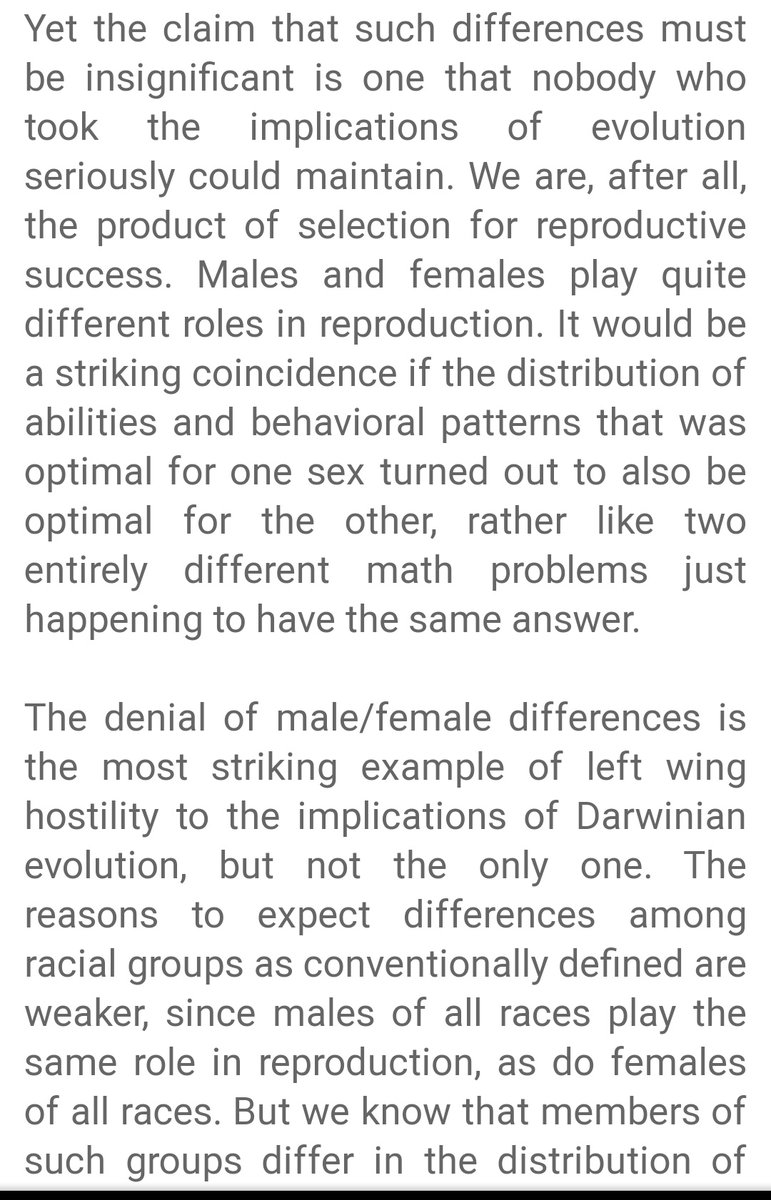 Friedman is wrong there; men of different races play different roles in the reproductive cycle; broadly speaking hunter gatherers, agriculturalists and pastoralists have different patterns for paternal provisioning and mates selection Human reproduction doesn't end at conception