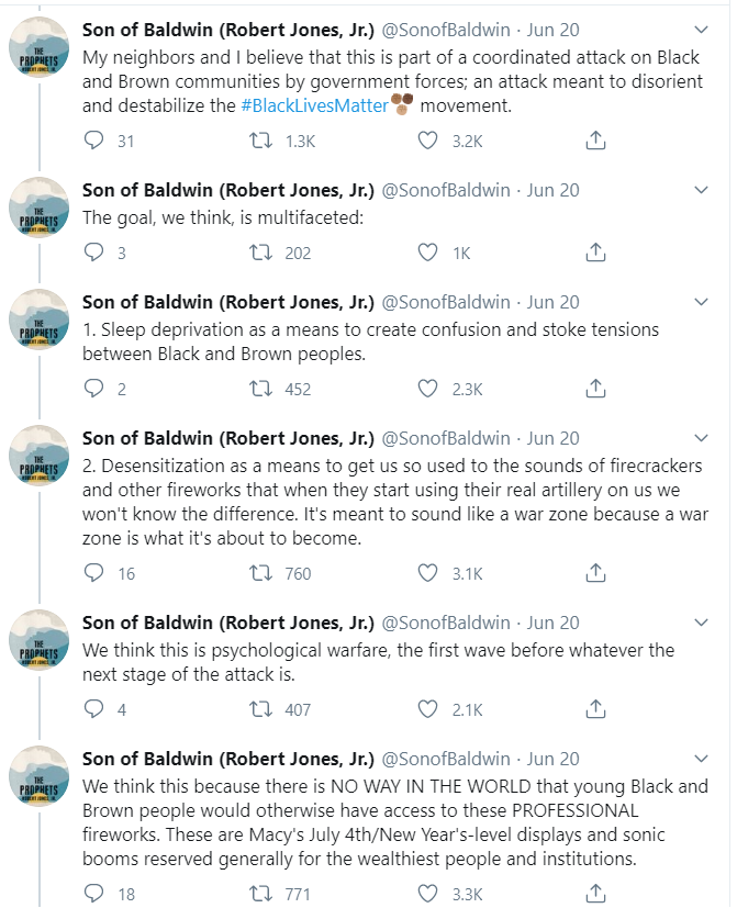 The New York Times' "1619" correspondent N. Hannah Jones is promoting a conspiracy theory that government agents of the White Male Power Structure are shooting off all those fireworks in Brooklyn to "disorient and destabilize the #BlackLivesMatter movement."https://twitter.com/IsaiahLCarter/status/1274802356002185218 …