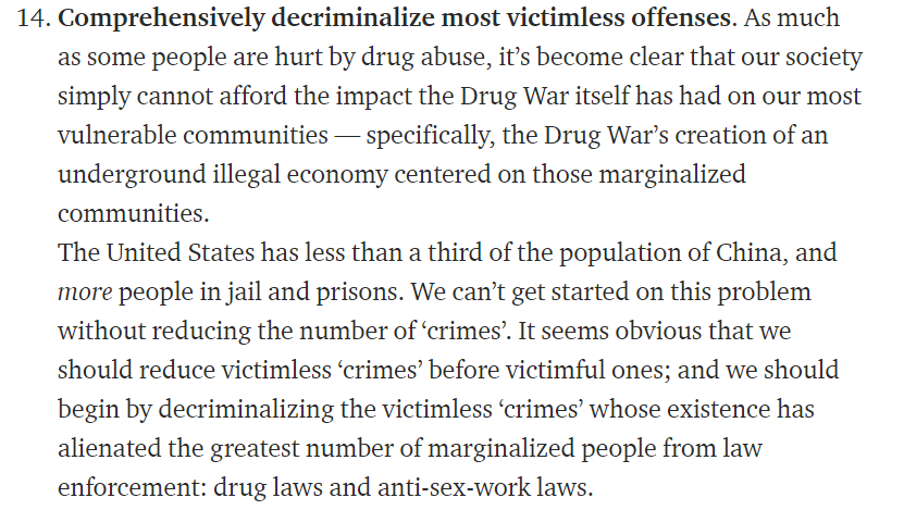 A bit further down more total and complete disconnect with reality. People in jail for "drug offenses" aren't harmless - they're there b/c you can intimidate witnesses but not police chemists. The last "reform" wave made prosecuting actual crime impossible.pic.twitter.com/0SIVvMmm2b