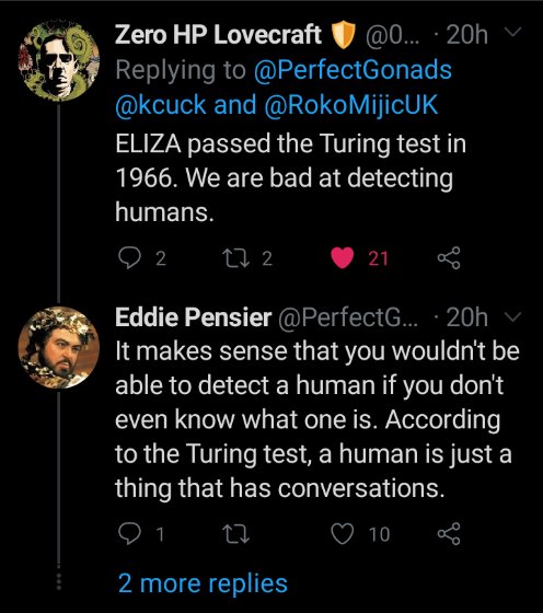 Consider the hypothesis behind the Turing test as disproven as the Ptolemaic model of the heavens. The hypothesis there is unspoken but boils down to "humans can detect a fake human by interacting purely in text with it" 3/3