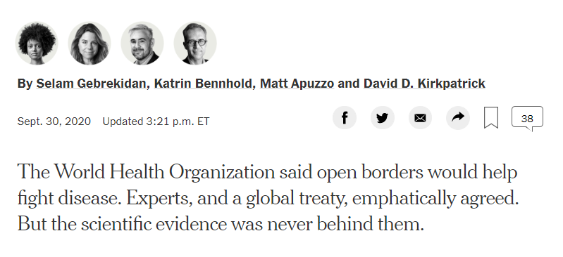 Of course they weakly try to save face by invoking the counter-narrative of the Jaws mayor who doesn't want to cancel the big summer festival but it's quite clear that the ideological commitment of progressives are what created the problem - closing borders is double plus ungood