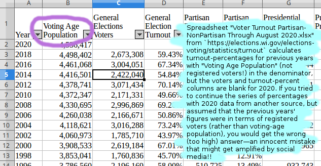 Except the 89% figure doesn't hold up, either (h/t @jimrandomh): https://www.wkyc.com/article/news/verify/verify-wisconsin-turnout-not-massively-larger-than-normal/507-ac05b2f4-fdfe-4bc5-91d5-7a22496c3314 … (my summary in attached image)pic.twitter.com/nQWUgWtE9w
