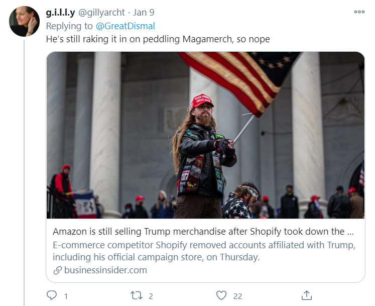 "He's still raking it in selling MAGA merch"