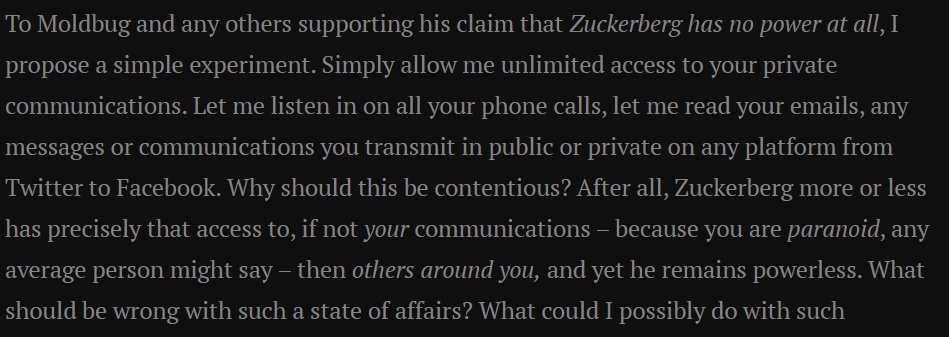 Just wrong because the article doesn't contend with the crux of the issue. Zuckerberg doesn't have access to your phone calls, etc. - people working for him do Damaging information isn't damaging if you're a progressive - only evidence of non-progressivism is https://twitter.com/ne0agent1c/status/1349407230118998016 …pic.twitter.com/qrzPutKI98