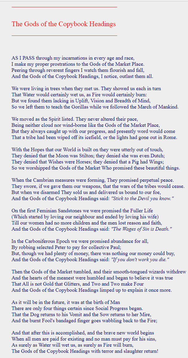 One of my favorites, just quoted it earlier today. I especially love the choice of "The Gods of the Market Place" Timeless in its relevancy, could have been written yesterday
