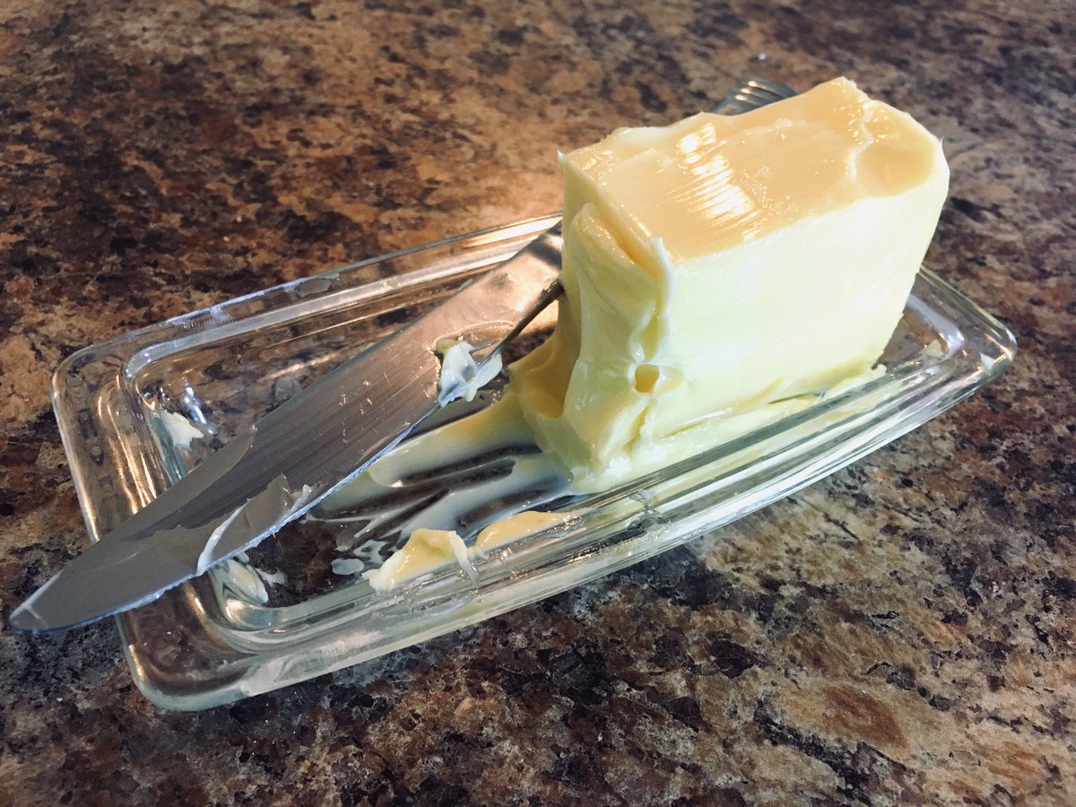 Why does everyone refrigerate their butter?? Do you like chipping away at a cold brick every morning, smushing it into your bread, destroying your toasts texture (and dignity)!? Salted butter lasts up to 2 weeks at room temperature. Get a butter dish and stop this nonsense!pic.twitter.com/RfNCC4Acmh