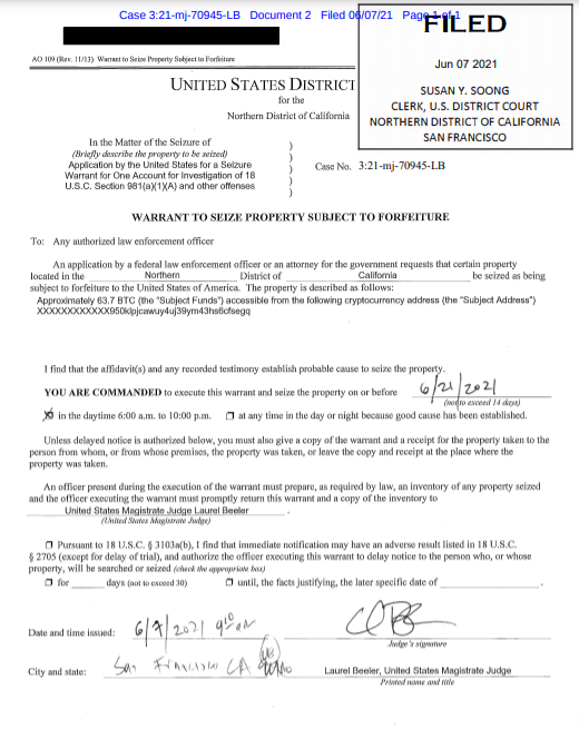 More info from the warrant here. So it looks like I was right. The FBI did not obtain the private keys. Instead, they took legal action against an exchange or some kind of custodial wallet that has servers in N California (Coinbase, lol?). These "hackers" were grossly incompetent pic.twitter.com/27YN3FMJUM