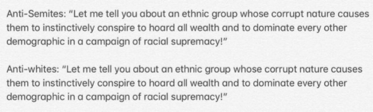 Aurelian of Rome ☪️ @AurelianofRomeReplying to @PsychRabble @HPluckrose and 3 others“...malignant, parasitic-like...” “...condition is foundational...” “...‘white’ people have a particular susceptibility...” “Parasitic Whiteness... appetites voracious, insatiable, perverse...” This is similar to Nazi propaganda. It makes the exact same racist claims. pic.twitter.com/VUfUP7hkSB3 replies 1 retweet 41 likes -