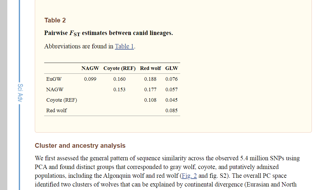 so your cope is "someone created a fake paper about canid species fsts and uploaded it" instead of ... just checking on canid fst distances.