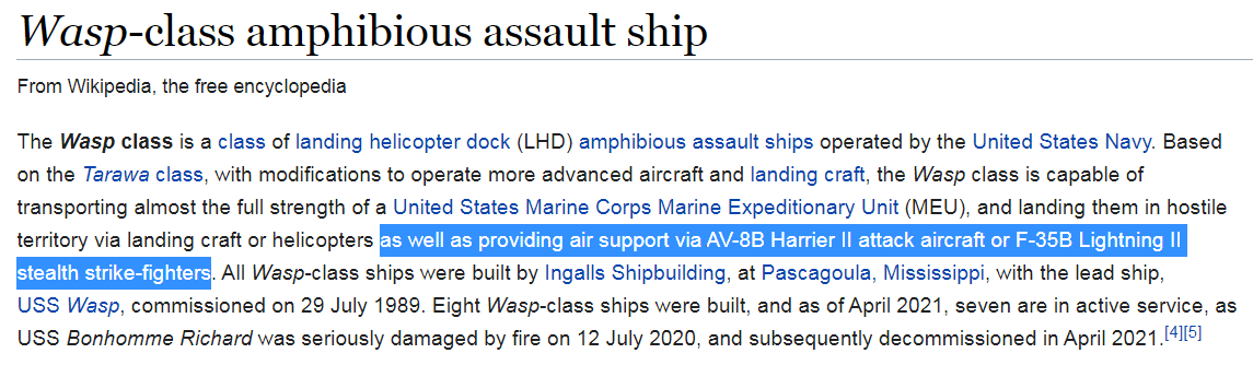 an amphibious assault ship is not an aircraft carrier. I mean battleships carried spotter planes too but no one calls them carriers. not trying to argue with you, just saying that's not what it is