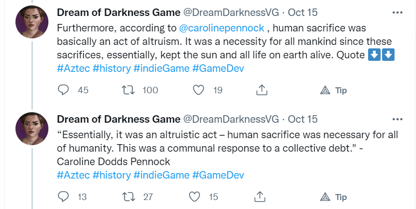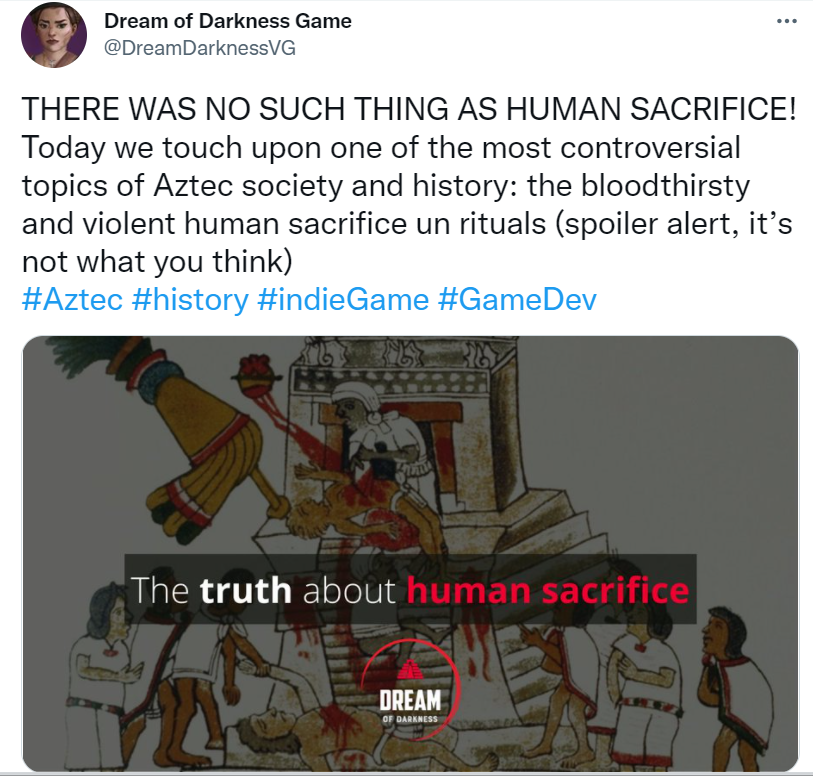 Celebration parallax with ... historical human sacrifice. If you believe it was bad, there was no such thing and you're a bad person. If you don't condemn it, it happened - but was actually good (because it kept the Sun from going out) https://twitter.com/DreamDarknessVG/status/1449047387469594629 …