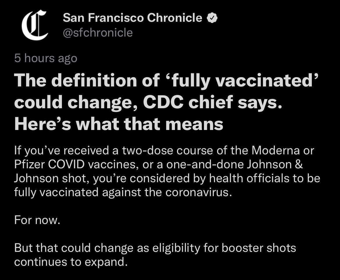 Moving the goalposts… By redefining “vaccinated” as “having received the latest booster shot,” they will claim that all the heart problems, blood clots, and new covid cases are happening to the "unvaccinated"pic.twitter.com/yKEFnH9R4O