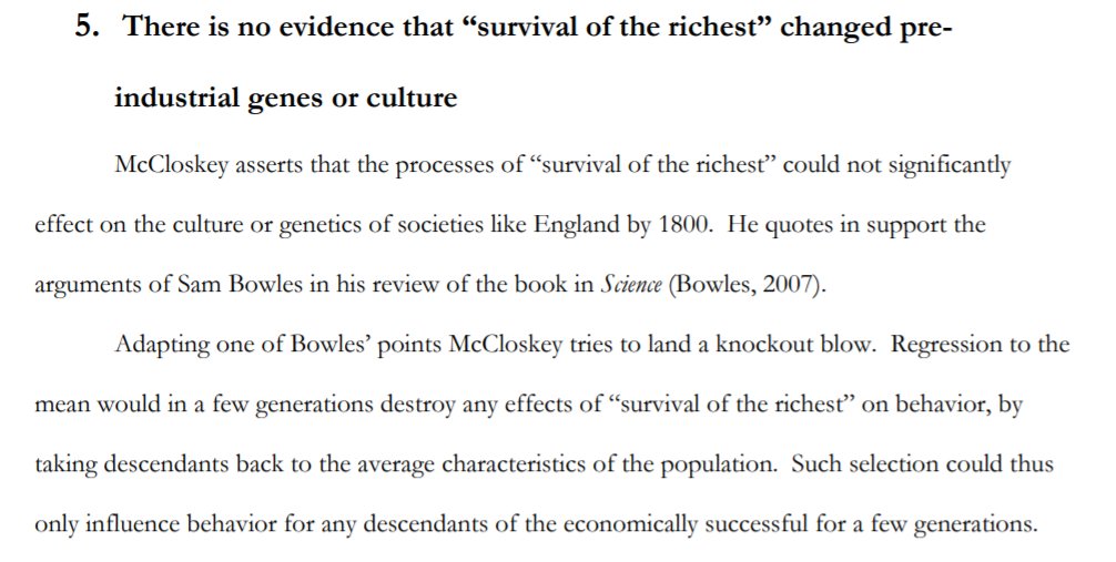 reminds me of the amusing incident when Deirdre McCloskey tried to refute Greg Clark's survival of the richest theory by saying it couldn't happen because of regression to the mean. Some economists are impaired