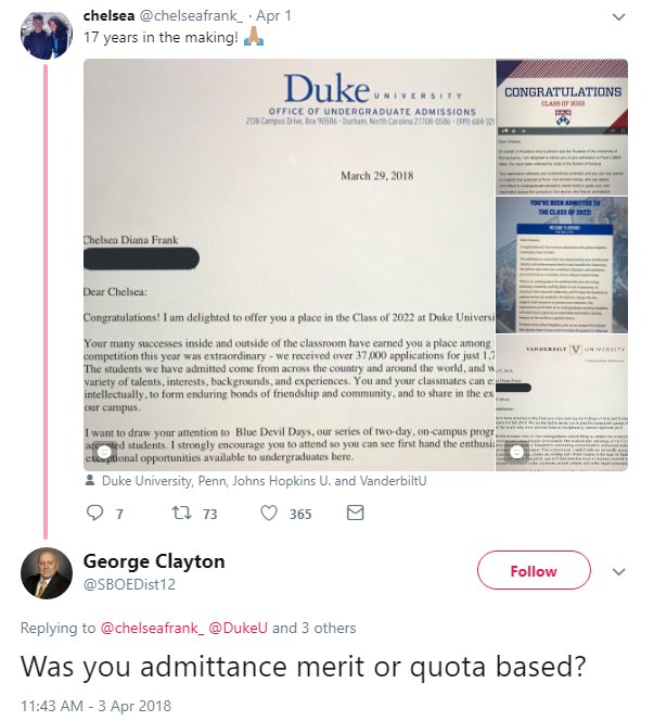 Ahh, that wonderful time of year when kids find out if they got accepted to college. Good chance to [checks notes] tweet minority guys and girls telling them they probably didn't earn it.pic.twitter.com/9XqjoMTuot