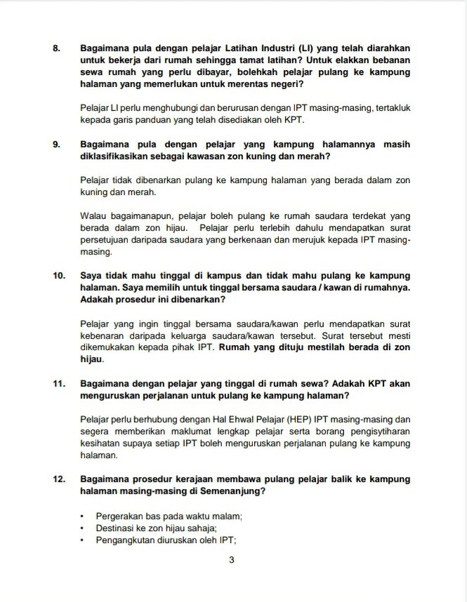 SOALAN LAZIM (FAQ) KEMENTERIAN PENGAJIAN TINGGI (KPT) BILANGAN 6 PERGERAKAN PULANG PELAJAR UNIVERSITI AWAM, SWASTA, POLITEKNIK DAN KOLEJ KOMUNITI MULAI 27 APRIL 2020 26 APRIL 2020