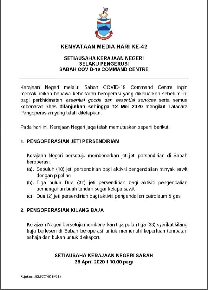 Kenyataan Media YB SKN Hari Ke-42, 28 April 2020 (Selasa)pic.twitter.com/MqVHSKPTNm