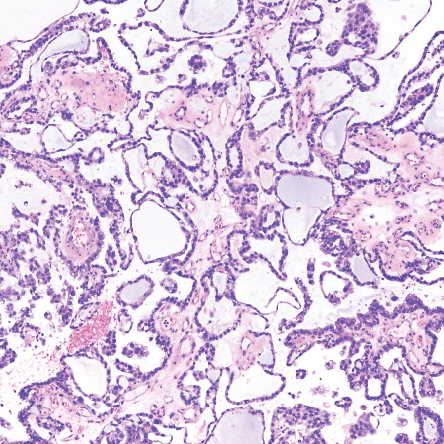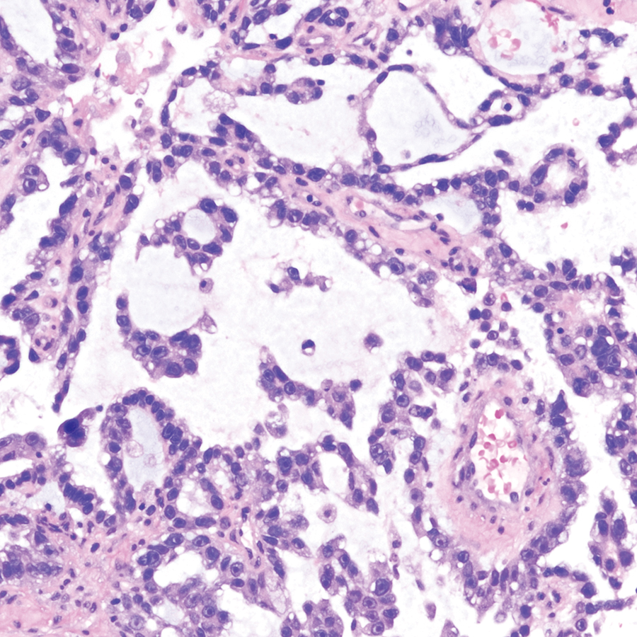 Run an abdominal CT scan, and you'd see an ovarian mass with metastases elsewhere in the body. This is metastatic ovarian clear cell carcinoma, confirmed by nuclear positivity for hepatocyte nuclear factor-1β. As usual, great work, everyone!