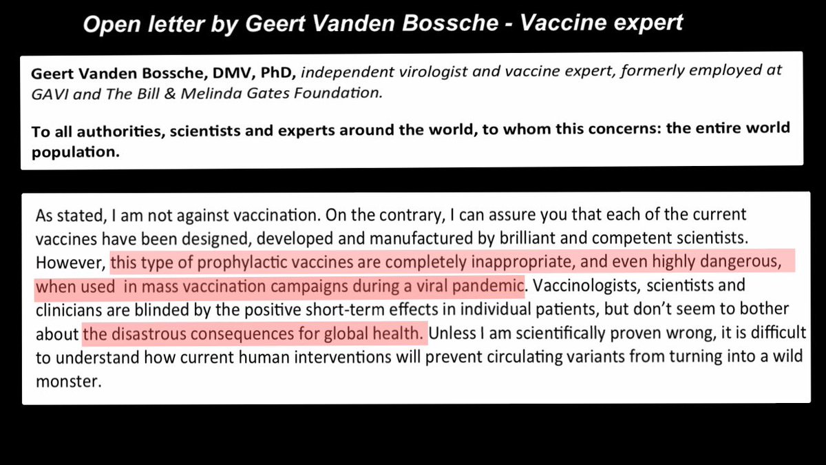 Geert Vanden Bossche, DMV, PhD : ‘’mass vaccination with leaky Covid-19 vaccines in the midst of the pandemic can only breed highly infectious variants’’ https://www.geertvandenbossche.org/ pic.twitter.com/BlIVEQNmX3