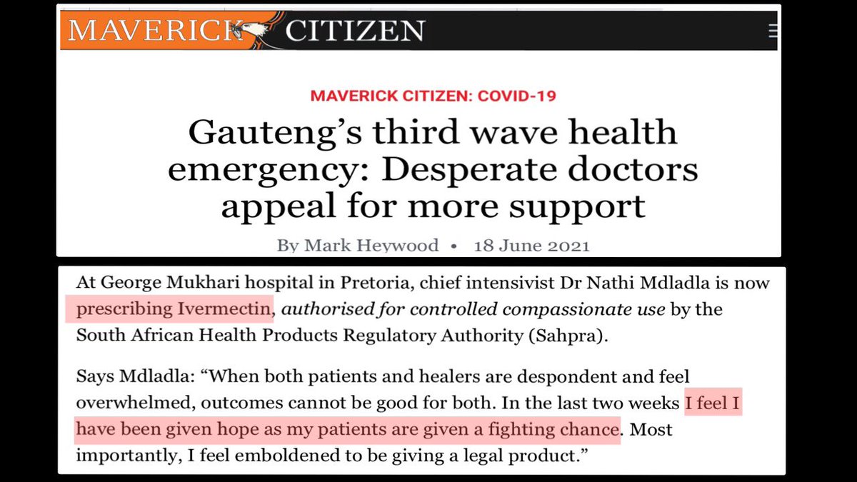 At the G. Mukhari hospital in Pretoria, chief intensivist Dr Nathi Mdladla is now prescribing 🍀Ivermectin He said "In the last 2 weeks I have been given hope as my patients are given a fighting chance (Ivermectin) is now making an impressive difference from morale to outcomes’’pic.twitter.com/iPWuVVRpdR