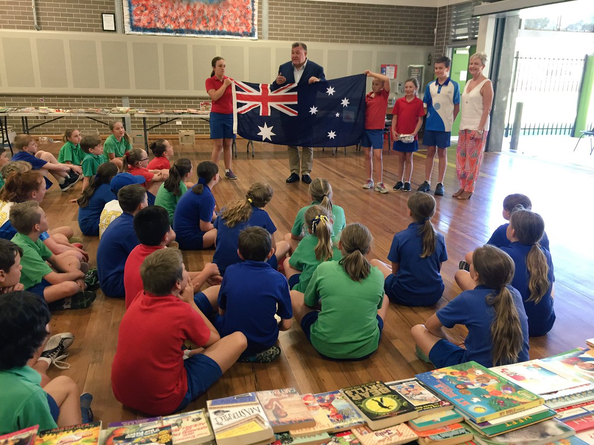 Happy to present some new flags to @pamwalmsley, Principal @ Loftus Public School this morning & talk about the function of government!