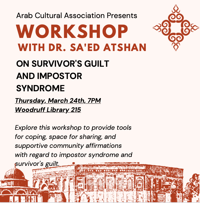 I've cherished every moment of serving as the faculty adviser to Emory's Arab Cultural Association this year and I'm looking forward to facilitating this workshop for the students next week. It's so important that we create spaces for healing.pic.twitter.com/SLbv0wnkWo