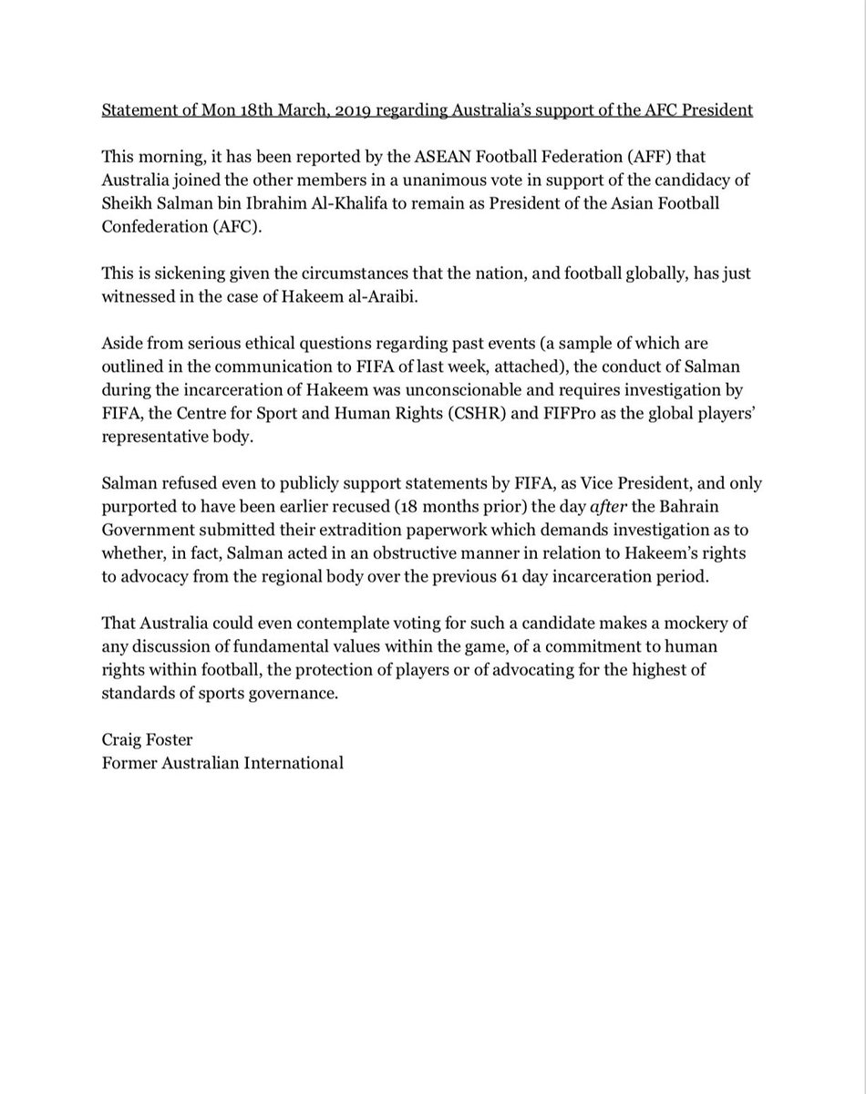 FFA do not represent the players / fans / clubs in any way shape or form! They are self serving and only out to increase their power not do what is right! As evidenced by this fiasco and the disgusting treatment of Staj
