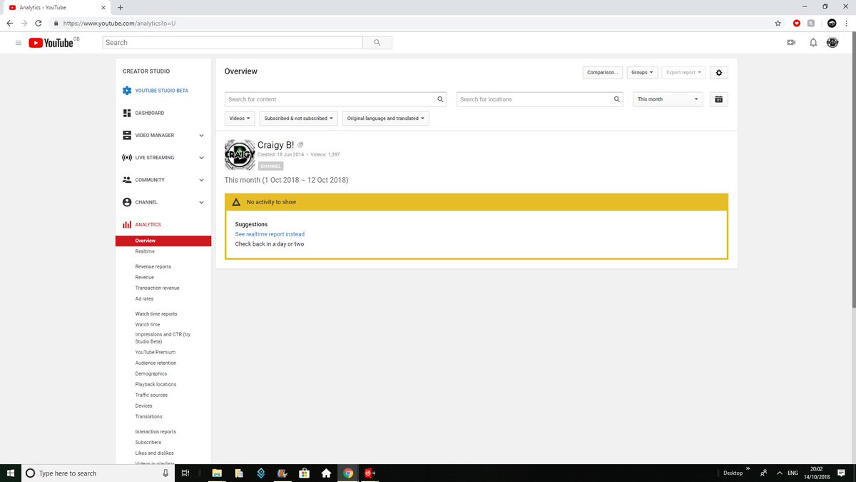 1. Craigy B!‏ @CraigyBeeGaming 14 Oct 2018