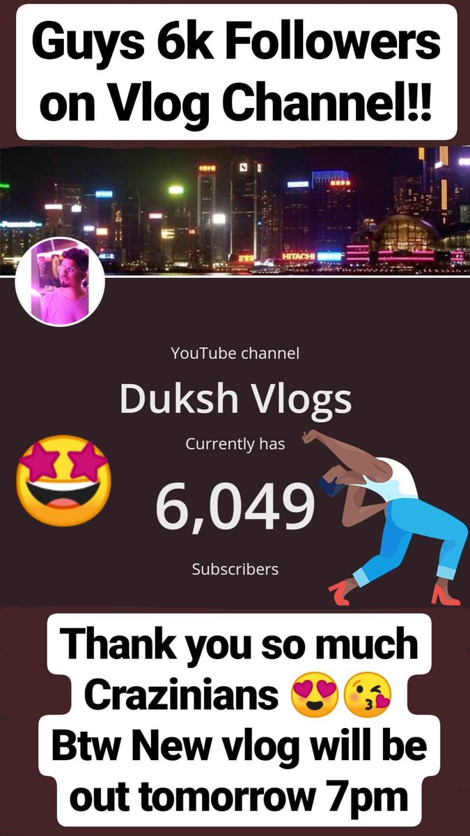 Thank you guys for 6k followers on our Vlogging channel.. Love you all!! #Crazinians @YTCreatorsIndia @YouTubeIndia @YTCreators @YouTube @TeamYouTubepic.twitter.com/AJEV1aeAyC