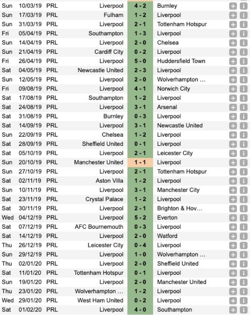 If Liverpool beat West Ham tonight, they'll have beaten all 19 of the other teams in the Premier League this season