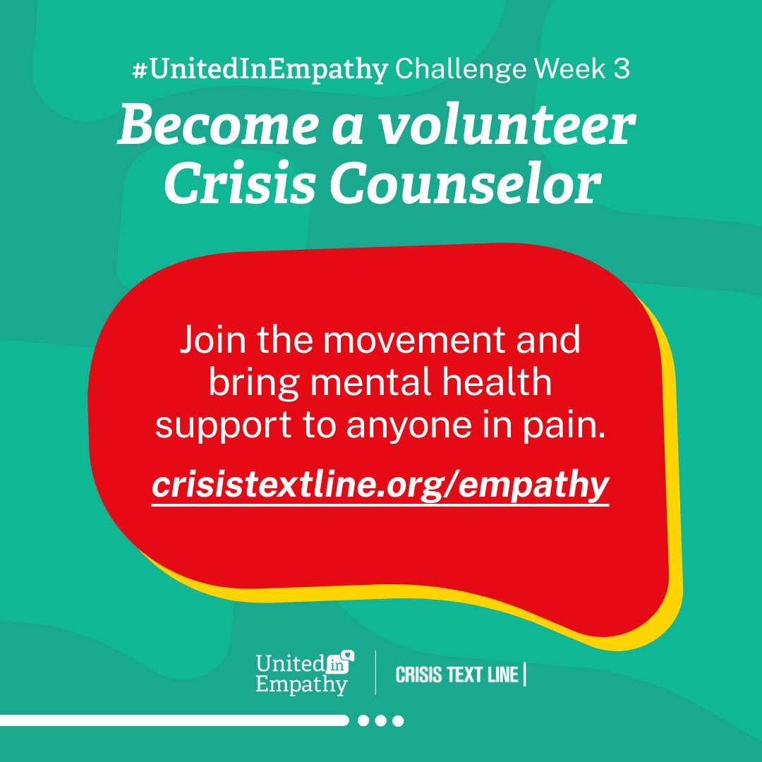 #UnitedInEmpathy challenge is about growing our community of volunteer Crisis Counselors. You can join the movement#MentalHealthAwarenessMonth