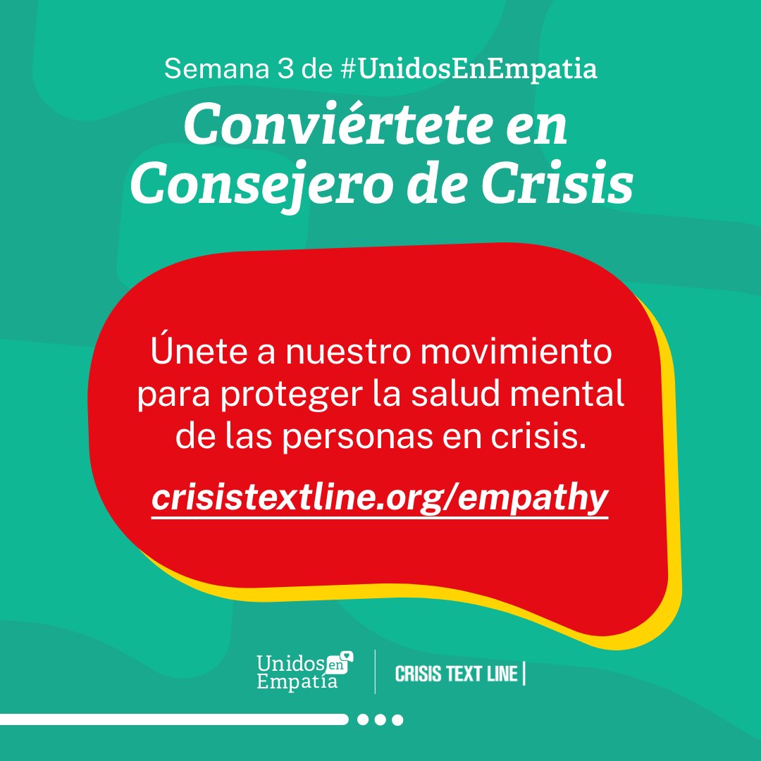 La salud mental es algo común en todos nosotros y en nuestras comunidades; reconocerla y cuidarla es también tarea nuestra. Cuéntanos, ¿cómo contribuyes y ayudas a mejorar la salud mental de tu comunidad? https://www.crisistextline.org/es/reto-unidos-en-empatia/ …