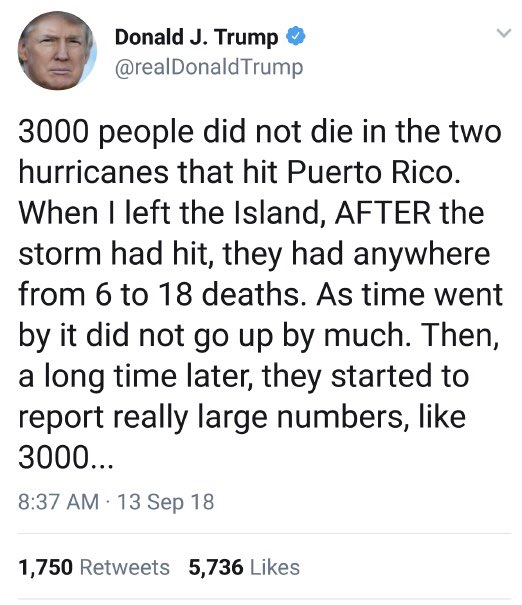 @realDonaldTrump and his policies.#PuertoRicoDeathTollhttps://twitter.com/scottforflorida/status/1040265322270474242 …Thanks. Twitter will use this to make your timeline better. UndoUndo -