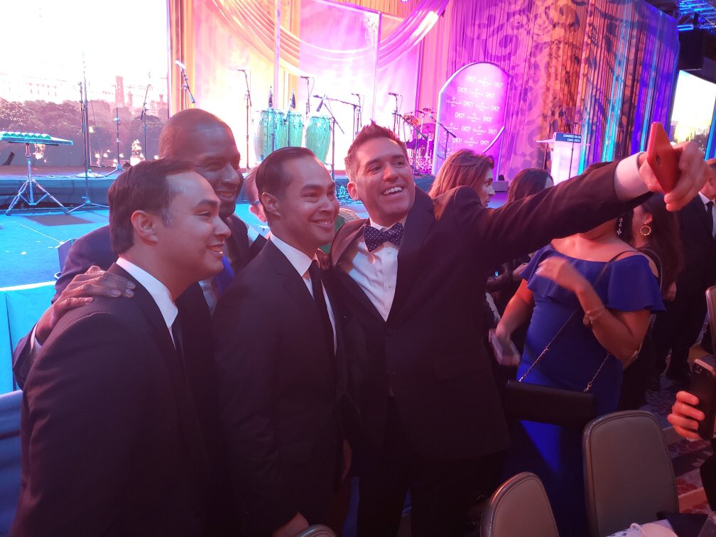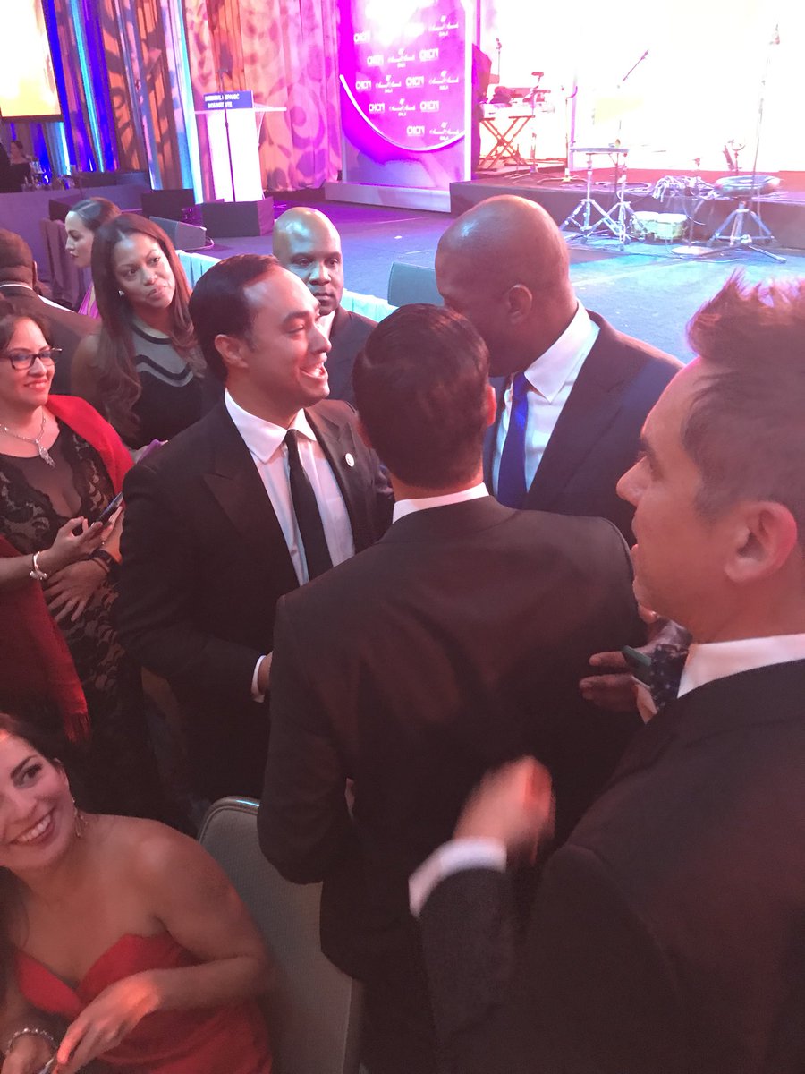 @AndrewGillum@JoaquinCastrotx@JulianCastro catching up at the#CHCI2018 gala.pic.twitter.com/Pwkppm2O17