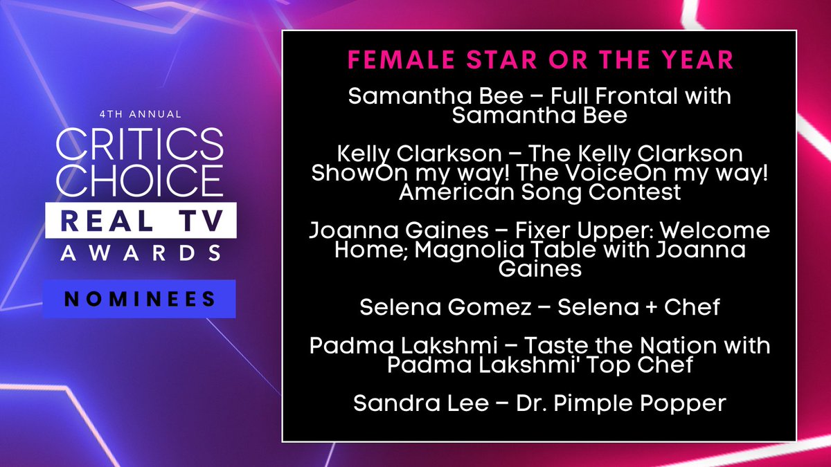 #RealTVAwards: Congratulations to the nominees for Female Star Of The Year!#CriticsChoice