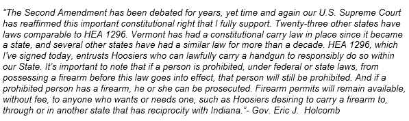 Statement from IN Gov. Eric Holcomb on signing of HEA 1296:pic.twitter.com/T4G0tgvqFe