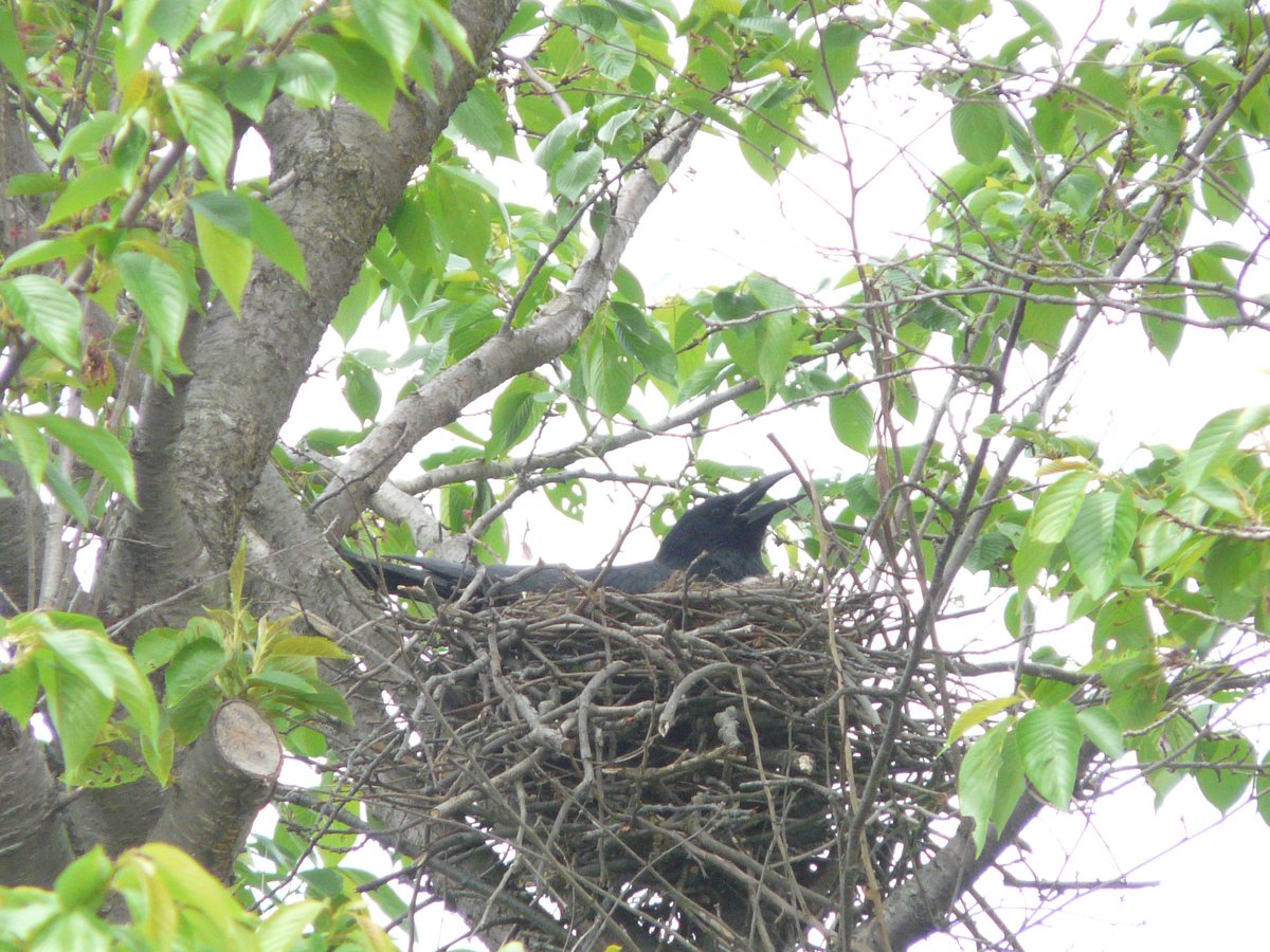 Carrion Crow (female) is incubating her eggs. 24 Apr, 2009. Nara city, Japan. Actually, they nest on a Sakura tree in my house.pic.twitter.com/Y54GBCaanO