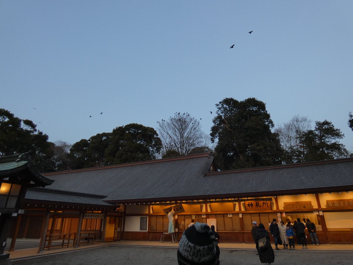 Mixed-species roost (Large-billed, Carrion and Rook) at Hikawa shrine (Saitama, Japan). In Japanese myth, crows were the sacred bird. Now it seems people have forgotten that old story, but it is not crow's business. Crows come to shrines to make roosts.