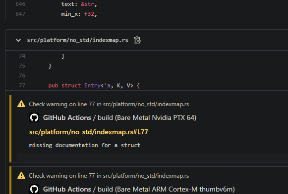 #rustlang into GitHub Actions is amazing. Inline build errors and warnings, failing tests, static code analysis with clippy and formatting problems.pic.twitter.com/IxzJzjEqt3