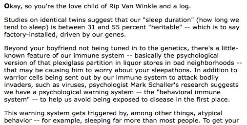 "My boyfriend thinks there's something wrong with me because of how much I sleep..." My science-based syndicated advice column on sleep duration and the behavioral immune system. (Also darkly funny!): http://www.advicegoddess.com/ag-column-archives/2018/07/nightlight-at-t.html …pic.twitter.com/4JLD9gl6o0