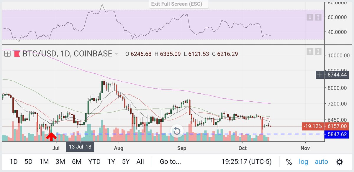 $BTC daily chart taking a hit now. If we do go to $5,840 I'm hoping it's only a strong spike down then a hard rebound.pic.twitter.com/wv3tNnJyOv