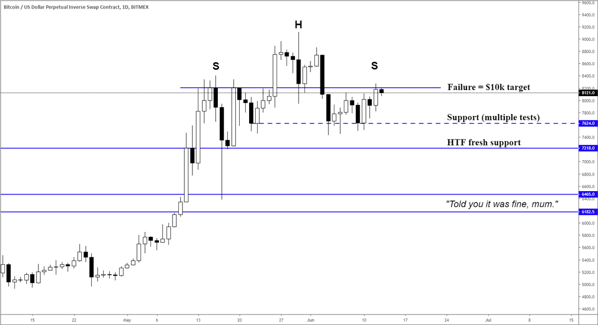 Me, an idiot: bad pattern traders can get trapped at this level High IQ comments: haha Cred you idiot that's not a Head and Shoulders! FUD!https://twitter.com/CryptoCred/status/1139090114070667264 …