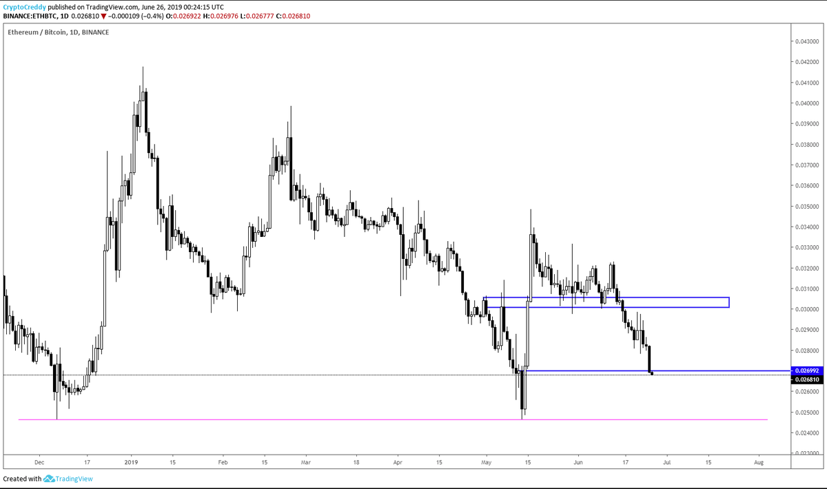$ETH /$ETHBTC Lost the support it ranged at for ~3 weeks and making lower lows. Reclaiming the blue box would present a nice long setup but until that happens I don't see Ethereum outperforming Bitcoin on a medium-term basis.pic.twitter.com/nHP0VFQQK1