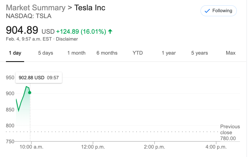 $TSLA, holy cow! Is this due to Wall Street#short#covering or investor FOMO?pic.twitter.com/IcSmFkJpCg