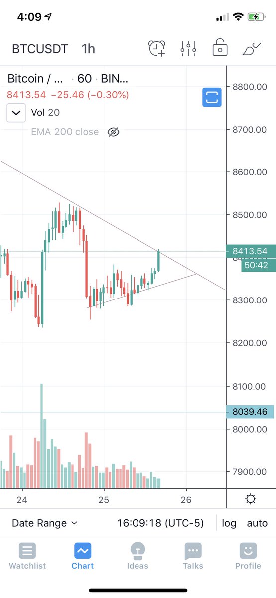 Aside from a couple harsh wicks down, BTC seems to be creating a trend back to the resistance. Scalping here to ~8425pic.twitter.com/TKsSCKTymW