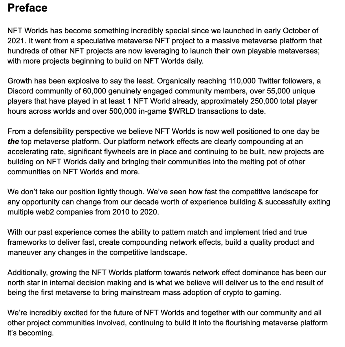 A tremendous amount has been accomplished by our team since launching NFT Worlds 6 months ago with Roadmap 1.0