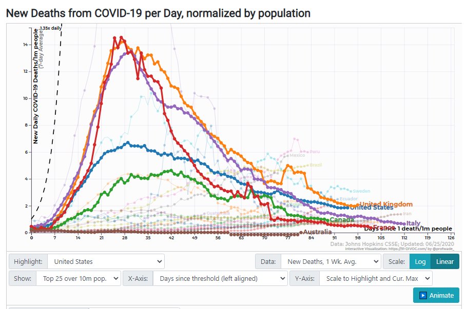 Deaths is a better metric. We are pretty comparable to Canada, way better than UK or Italy or Francepic.twitter.com/g9u0MVpxeI