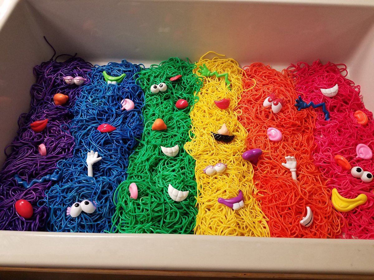 What do you do on a cold & rainy day? You pull out the sensory tubs, of course.